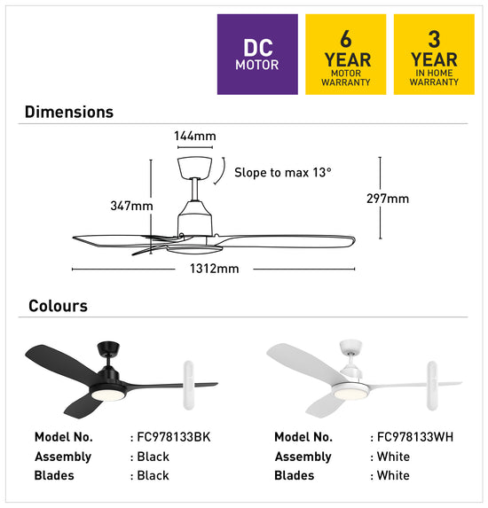 Mercator Raptor 131cm DC Ceiling Fan with Remote and LED Light (FC978133)