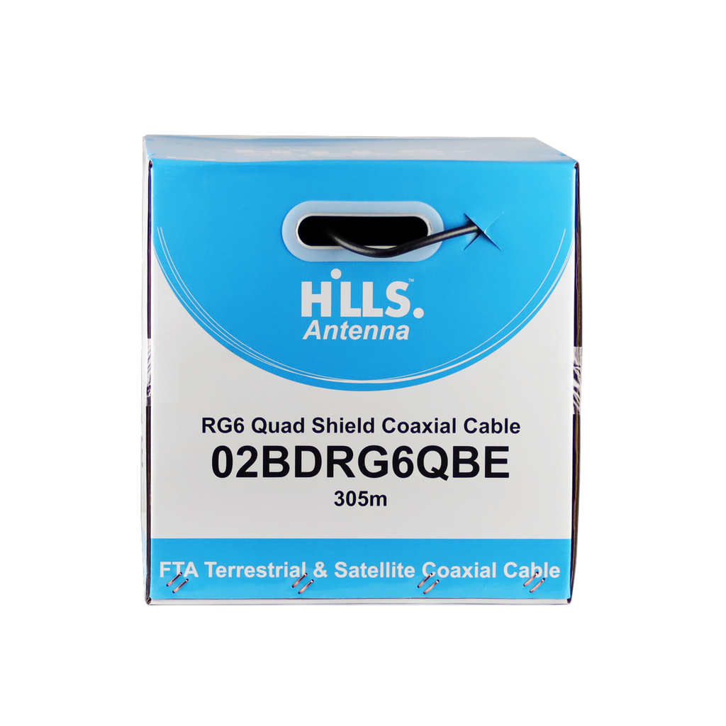 The Hills Antenna 02BDRG6QBE RG6 Quad Shield Cable is ideal for Terrestrial, Satellite and CCTV applications. It is available in our Smart Reel Box for easy cable pulling onsite. The outer sheath is reverse metre marked, giving a precise indication of the amount of cable left on the reel. The cable dimensions are ideally suited to our wide range of F-Type Connectors, either twist, crimp or compression.