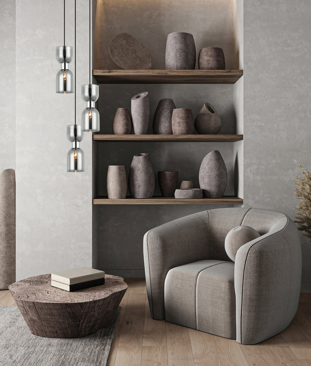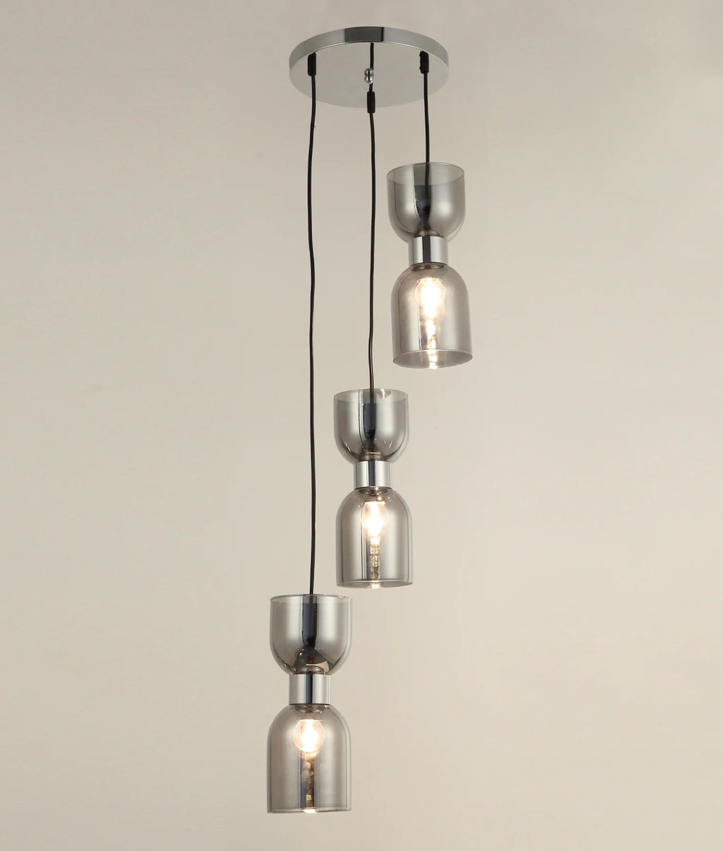 CLA CLESSIDRA: Interior Mirror Finish Smokey Black / Opal Glass Ellipse Multiple Round Base Pendant Lights
