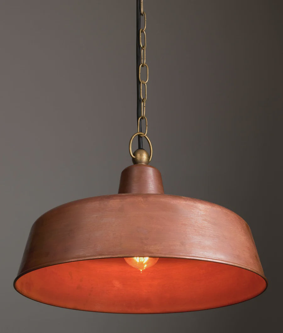 CLA DEKSEL: Industrial Rustic Aged Copper Interior Dome Shape Pendant Light