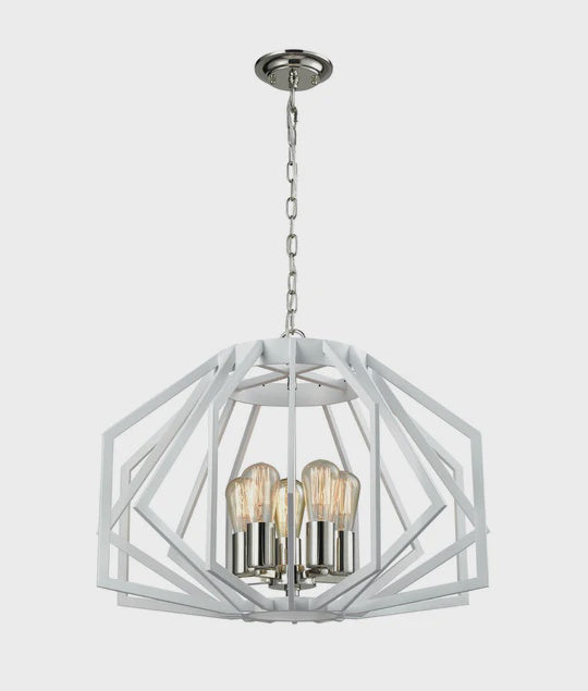CLA GAMBA: Industrial White Rustic Wide Angular Cage Pendant Light
