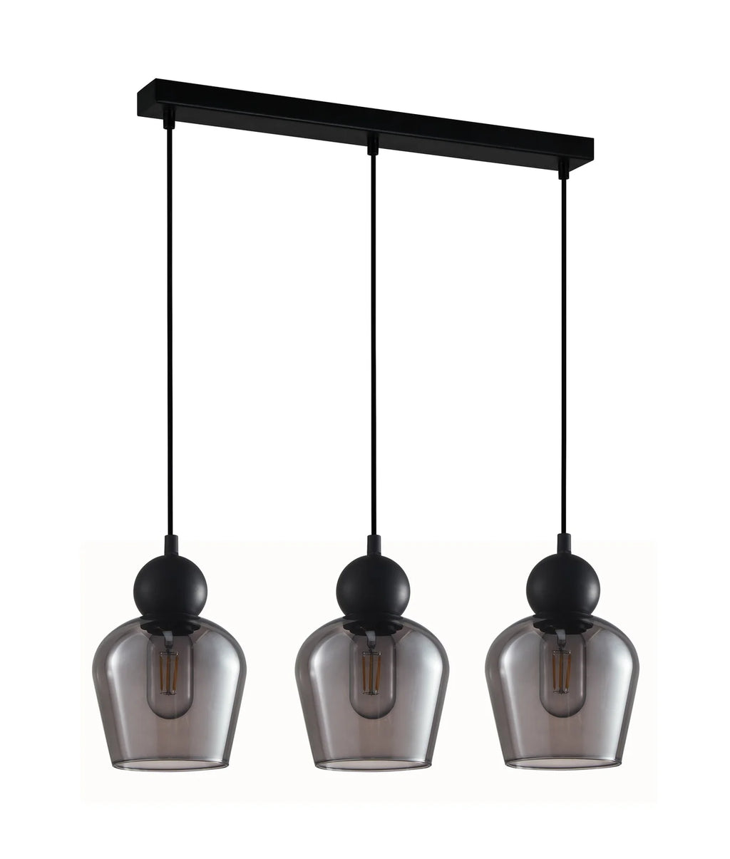 CLA CHAMPAN: Interior Bronze Amber / Smokey Black Glass Ellipse Multiple Bar Base Pendant Lights X3S