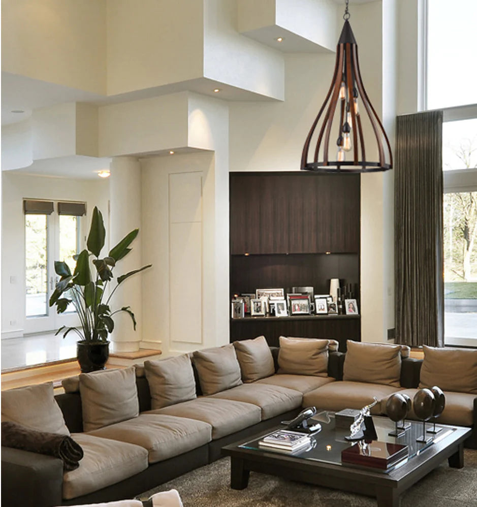 CLA KHALEESI: Medieval Style Rustic Oak Dark Red Wood Medium Bell Pendant Light