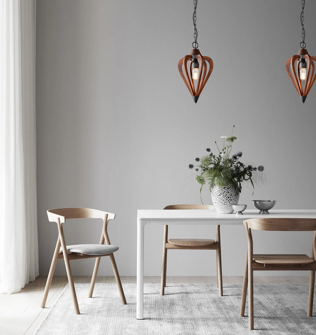 CLA SENORITA: Rustic Small Tuscan Coffee Cherry / Winter Moss Wood Pendant Light