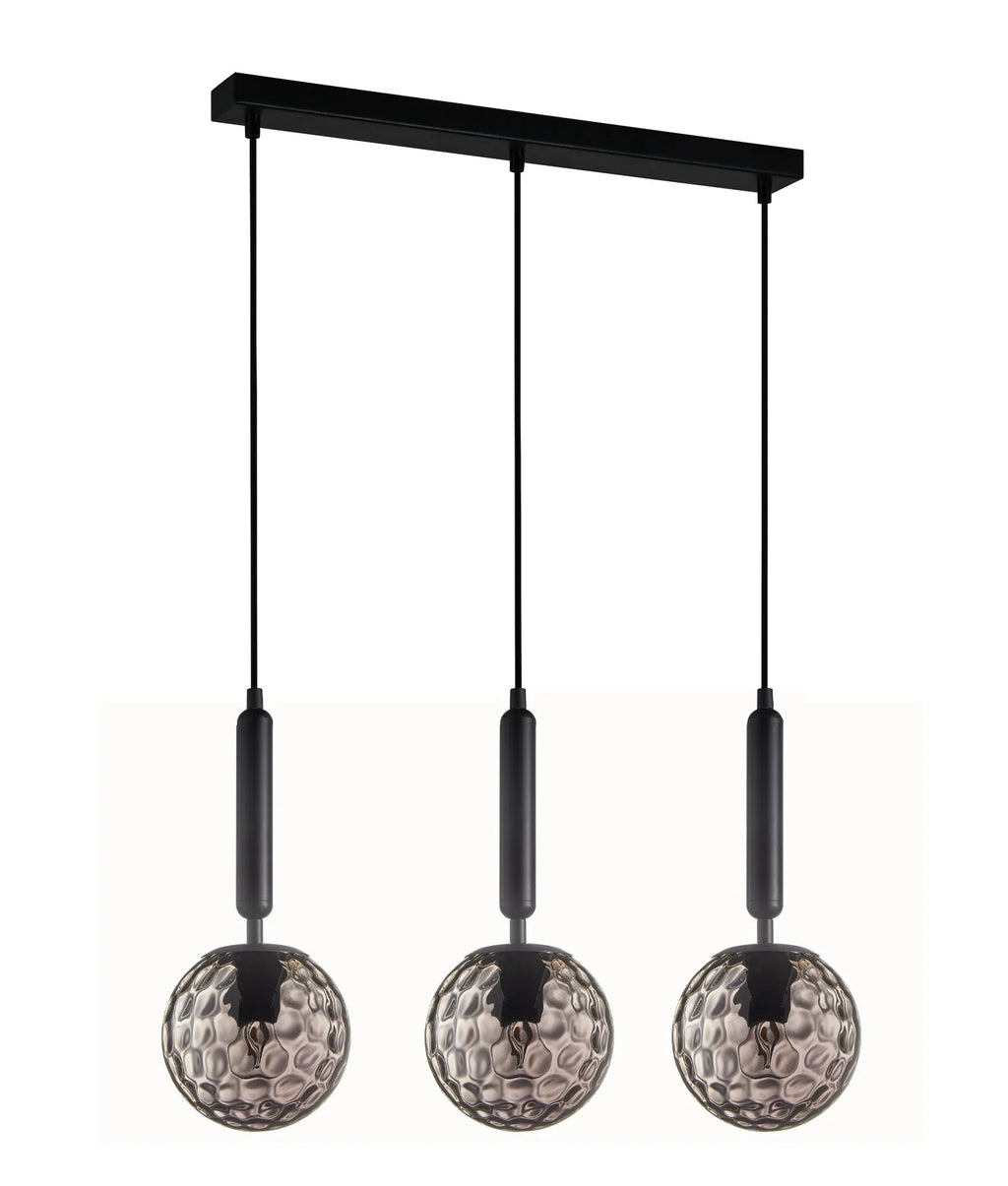 CLA TRATTINO: Interior Bronze Amber /Smokey Black Spherical Glass Multiple Bar Base Pendant Lights X3S